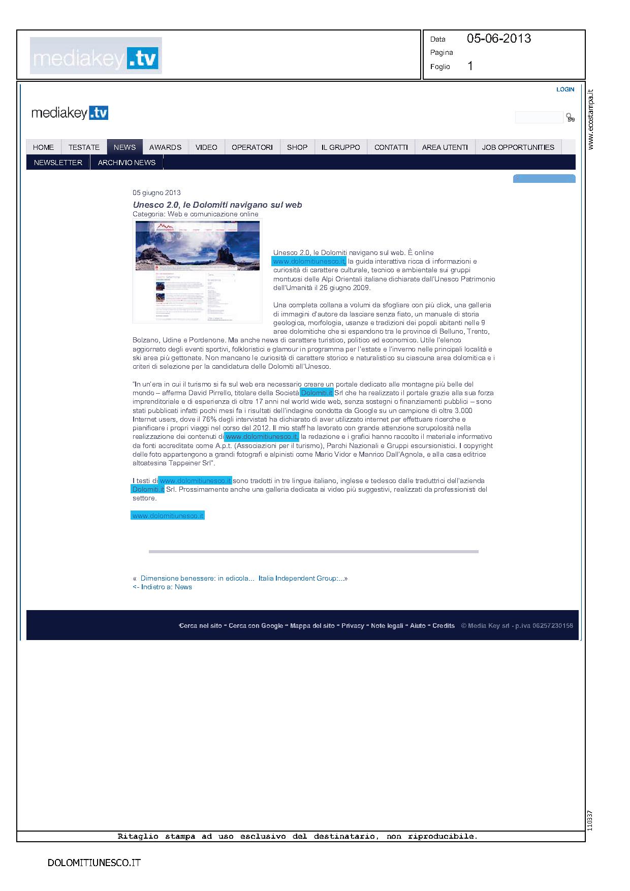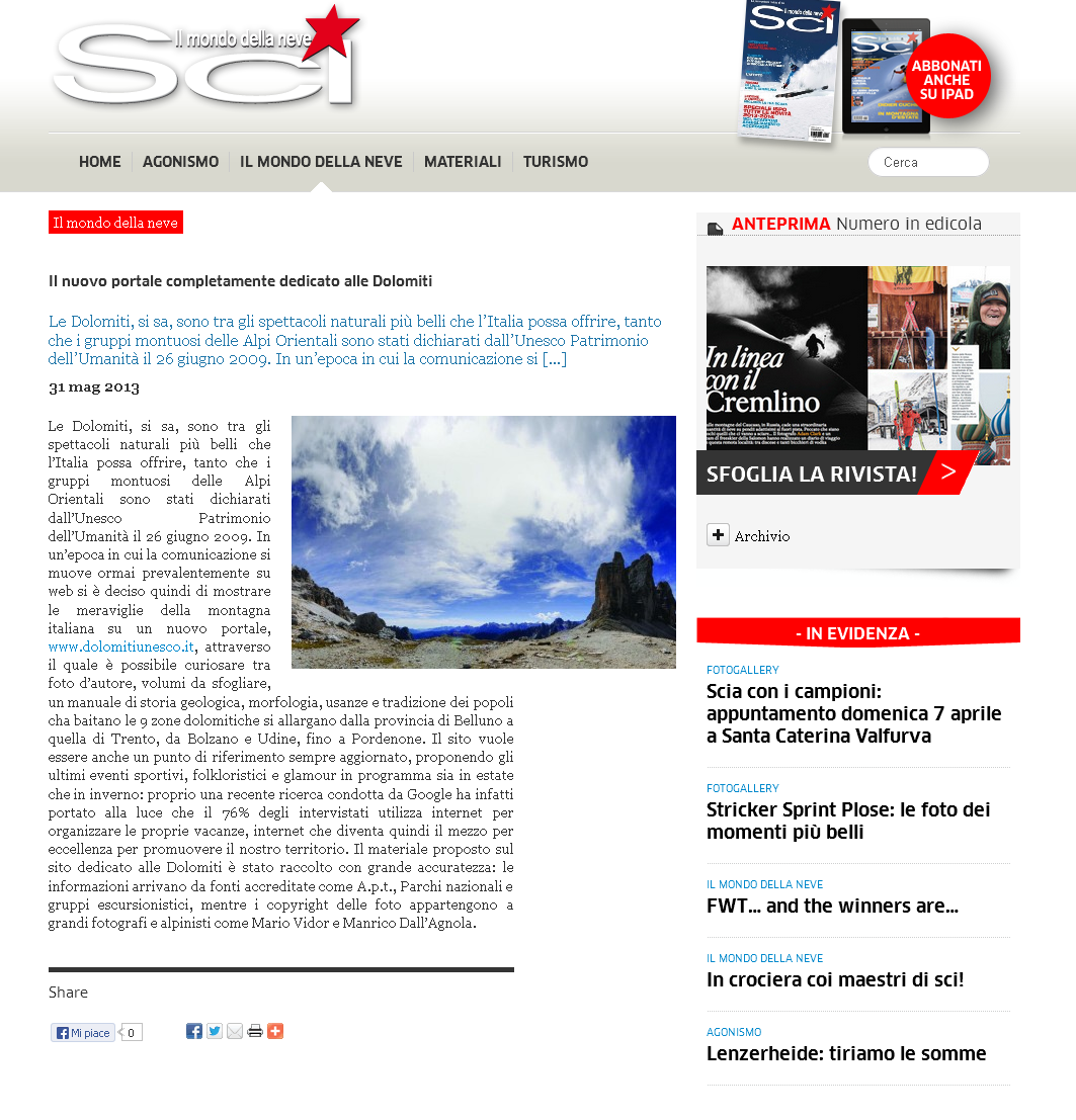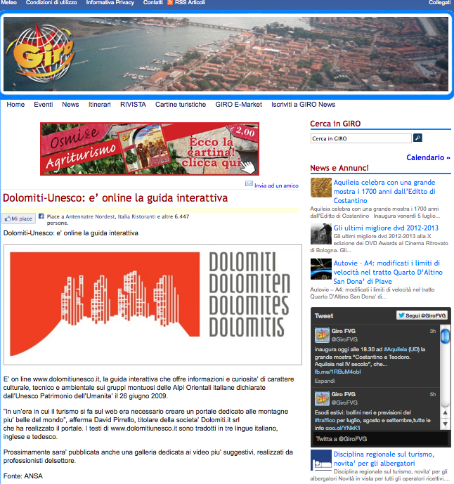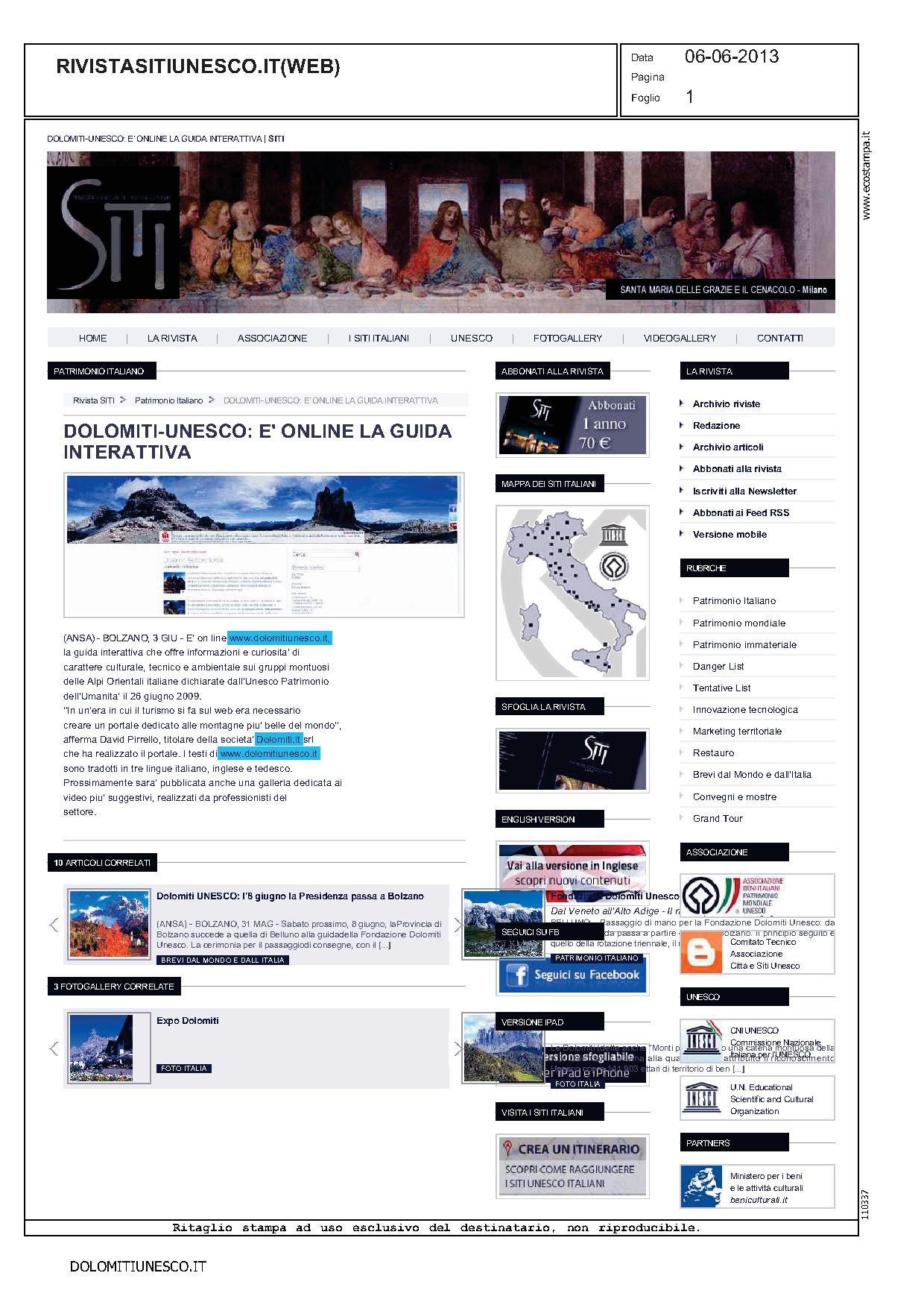 Dolomiti 03 giugno 2013 – Unesco 2.0, le Dolomiti navigano sul web. E’ on line www.dolomitiunesco.it, la guida interattiva ricca di informazioni e curiosità di carattere culturale, tecnico e ambientale sui grupp