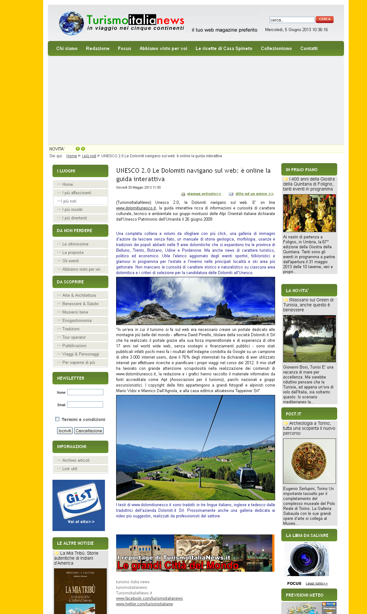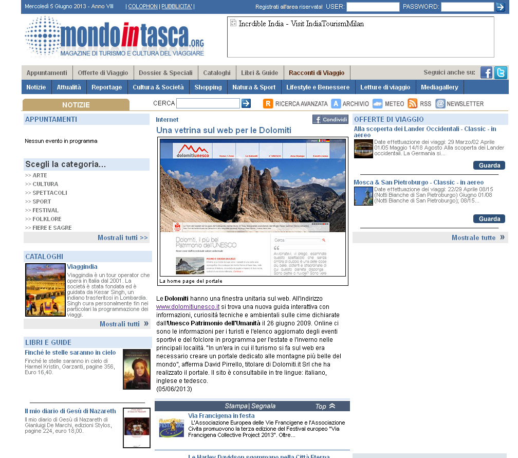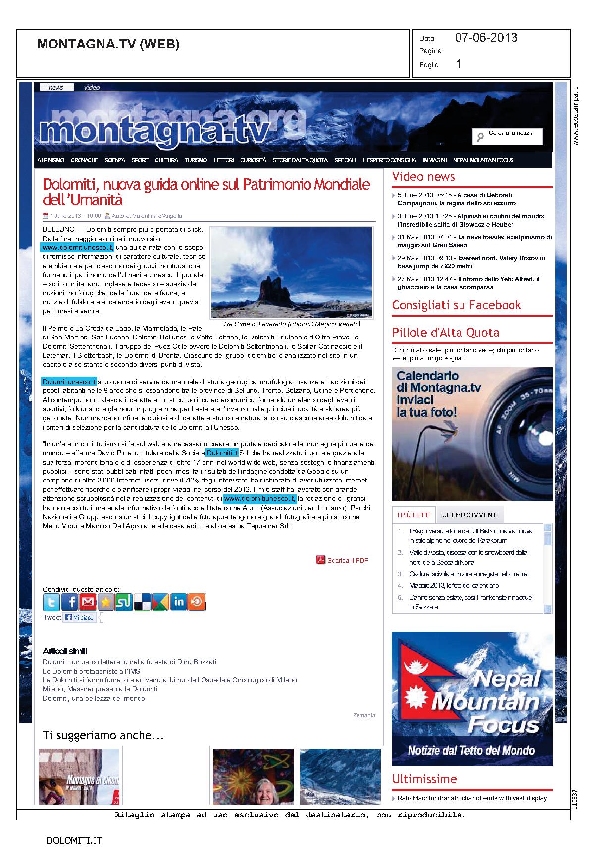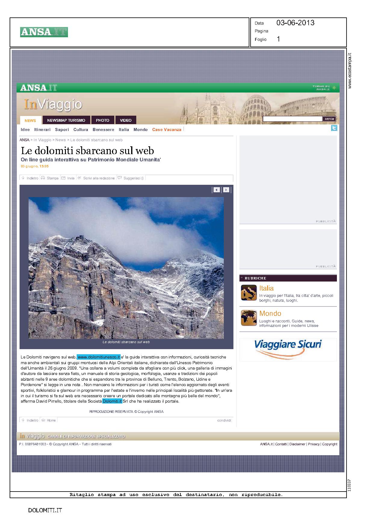 Dolomiti 03 giugno 2013 – Unesco 2.0, le Dolomiti navigano sul web. E’ on line www.dolomitiunesco.it, la guida interattiva ricca di informazioni e curiosità di carattere culturale, tecnico e ambientale sui grupp