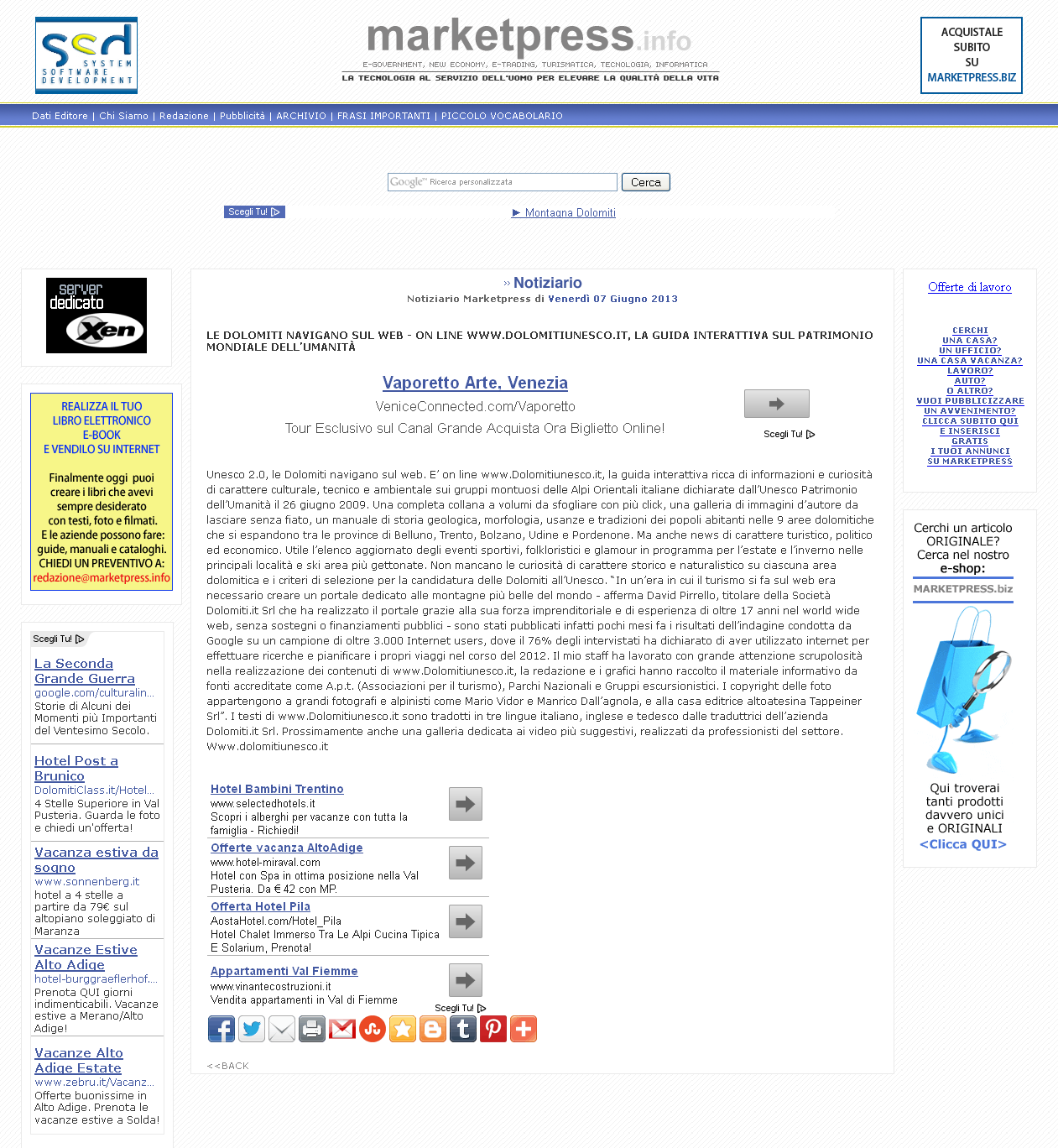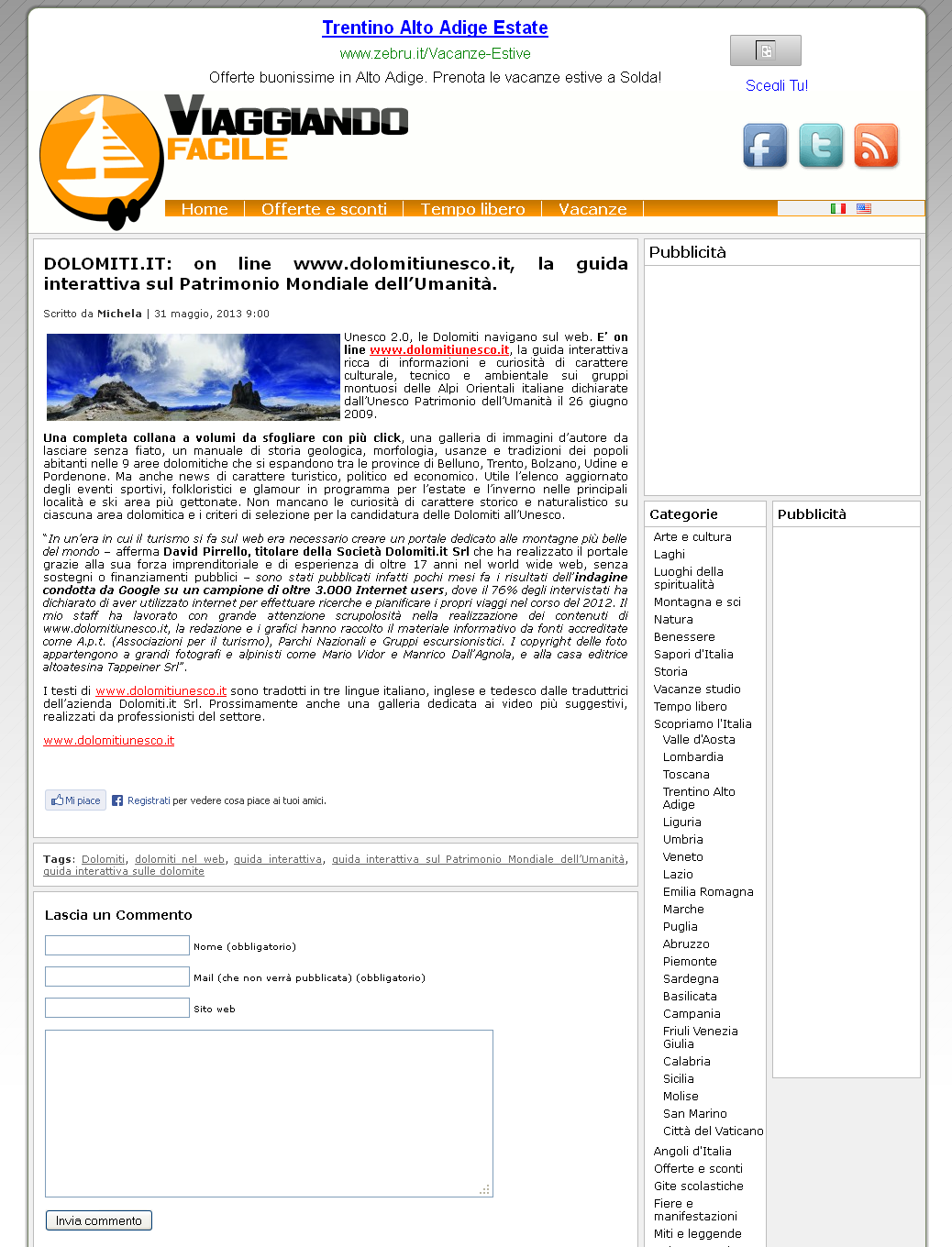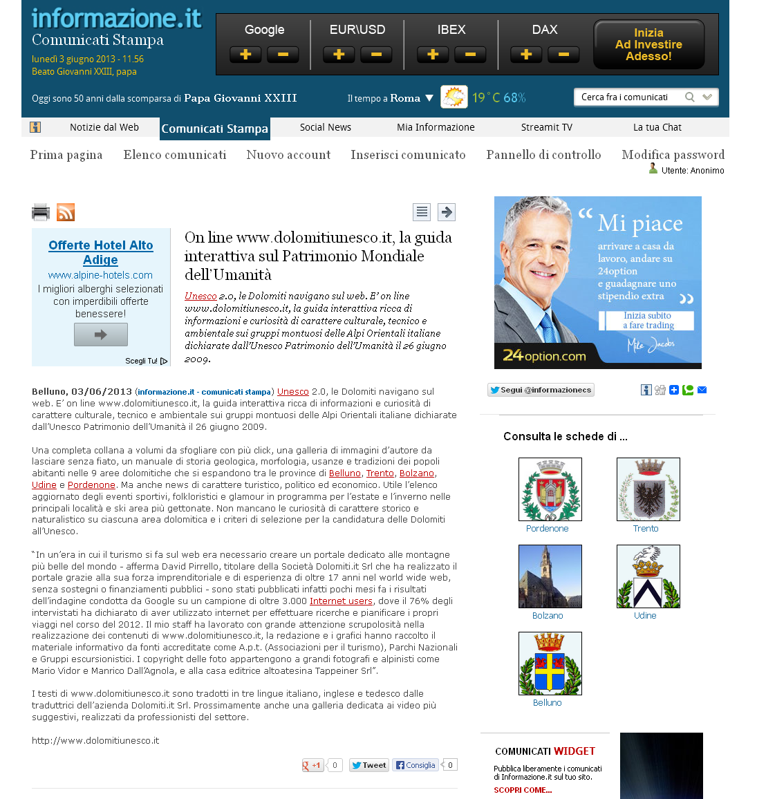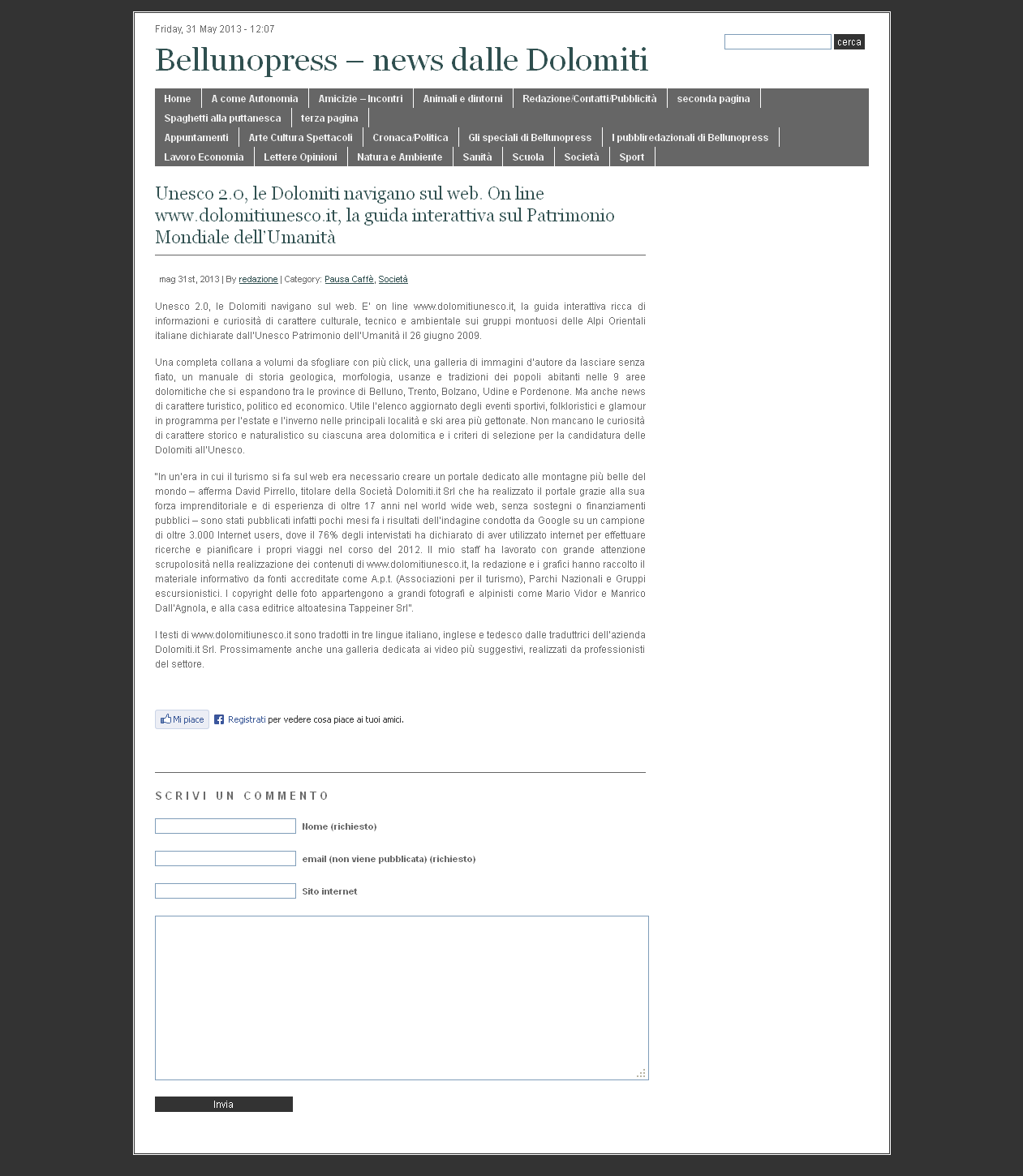 Dolomiti 03 giugno 2013 – Unesco 2.0, le Dolomiti navigano sul web. E’ on line www.dolomitiunesco.it, la guida interattiva ricca di informazioni e curiosità di carattere culturale, tecnico e ambientale sui grupp